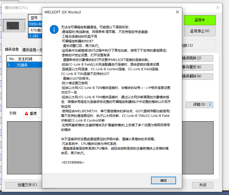 連5UPLC的CPU診斷的時候,老是提示這個,多連幾次又可以打開。在程序在線寫入 的時候也經(jīng)常提示這個,重試幾次又可以寫入了,搞不懂什么原因
