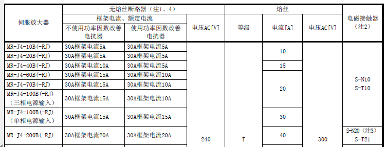 像是MR-J4-40B,有電抗器只要5A無(wú)熔絲開(kāi)關(guān),沒(méi)有電抗要10A無(wú)熔絲開(kāi)關(guān)
