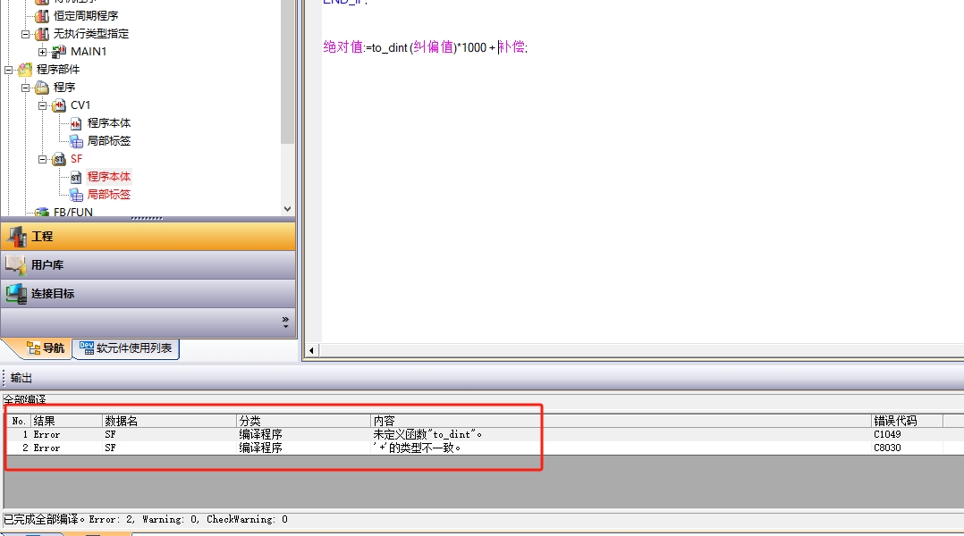 但是編譯錯(cuò)誤。16位只能與16位運(yùn)算,32位只能跟32位運(yùn)算,有沒有簡(jiǎn)便的方法?難道也要像梯形圖那樣先將16位運(yùn)算的存入32位,再進(jìn)行32位之間的運(yùn)算嗎