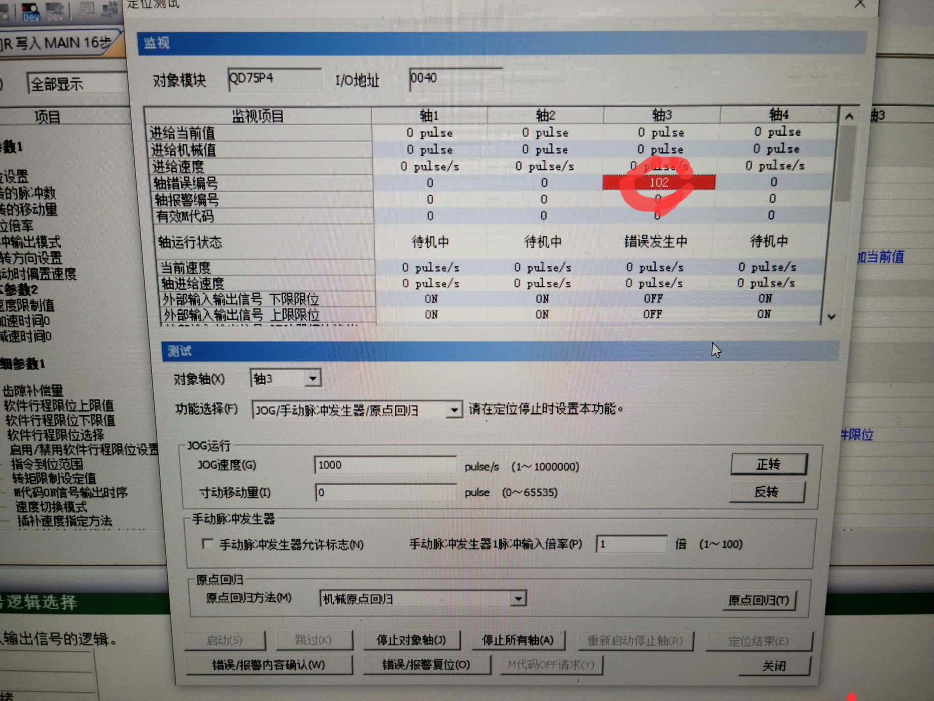 Re:三菱QD75P4 手冊里報(bào)警代碼102  驅(qū)動模塊