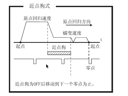 引用引用第1樓brainy_fa于2023-05-16 00:10發(fā)表的 :【近點狗】就是一個外部開關,伺服電機回原時先高速運行,碰到這個開關就變?yōu)槁佟?br />慢慢離開這個開關后,以這個速度繼續(xù)移動,找【零點】信號。這個【零點】信號一般是伺服電機的編碼器的Z相脈沖。每一圈有一個Z相脈沖,所以這個圖里【零點】有多個,代表伺服電機回原時轉了很多圈,但【原點】(圖中所標起點)是離開近點狗之后的第一個零點的位置。