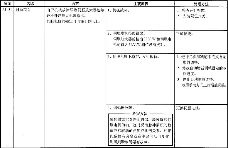 我司一臺機械是由三菱MR-J2-200A伺服器和一個伺服馬達為動力,前段時間從老廠搬到新廠。伺服器出現故障,啟動就報警自停,顯示R51。減小扭力同樣自停,顯示R50。再減小,顯示E1。(應該是轉距