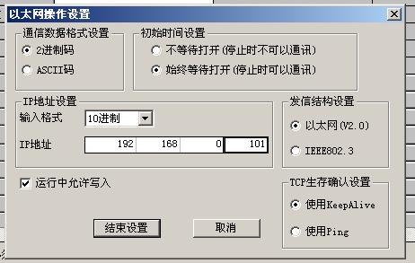 用編程電纜連接PLC和計(jì)算機(jī),建立新工程,選擇Q00JCPU。由于模塊已經(jīng)在機(jī)架上,已經(jīng)讀取到。在PLC參數(shù)I/O分配中以太網(wǎng)模塊起始地址為0000,在網(wǎng)絡(luò)參數(shù)中選以太網(wǎng),第一個(gè)模塊:網(wǎng)絡(luò)類(lèi)型:以太網(wǎng)。起始IO:0000,網(wǎng)絡(luò)號(hào)1組號(hào)1站號(hào)1,操作設(shè)置IP:192.168.1.254;開(kāi)放設(shè)置TCP,成對(duì),本地端口1024,對(duì)方IP:192.168.1.253。端口0540。PLC與計(jì)算機(jī)直連。選擇以太網(wǎng)通訊模塊之后,通信測(cè)試報(bào)錯(cuò),不能連接。一直都是這樣。非常郁悶