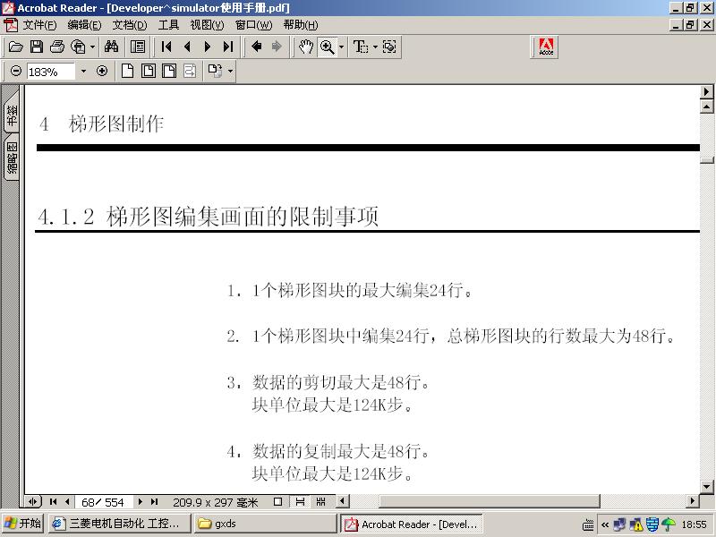 剛下了GXDeveloper 手冊看,發(fā)現(xiàn)軟件不允許梯形圖超過24行。這就讓我想不明白了:一個不能超過24行的梯形圖編輯軟件還有什么實用意義?是我是新手寫的程序不夠簡短還是高手們寫的程序都不會超過這個限制?急求解答,高手們是如何解決這個問題的? ![]() |