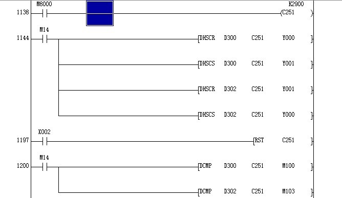 引用引用第1樓lxd19821127于2010-07-14 09:55發(fā)表的 :當(dāng)D300與C251值相等時置位Y1并復(fù)位Y2,當(dāng)D302與C251值相等時置位Y2并復(fù)位Y1