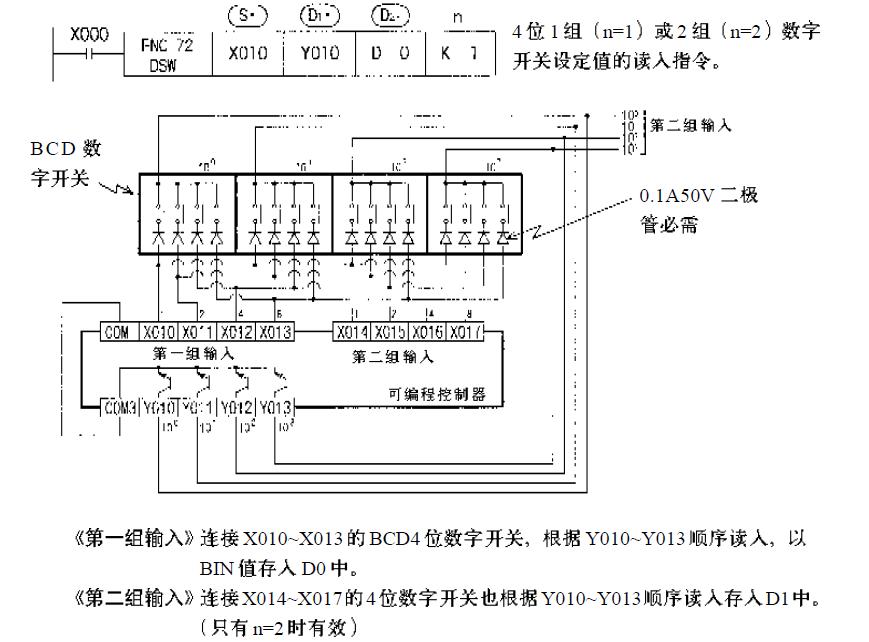 利用BCD碼的指撥開(kāi)關(guān),四位一組,接法如圖,指令為DSW,這是2n用的