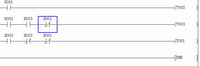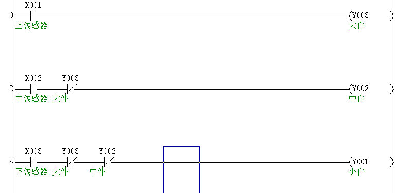 中間大的部件通過的時(shí)候,顯示中間大的指示燈及其相關(guān)部件(輸出點(diǎn)為Y3)接通。