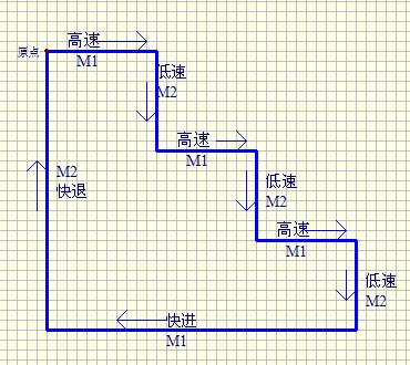 要以高速返回M2這段路程被按下停止是的這一點(diǎn),然后接著低速工進(jìn)!