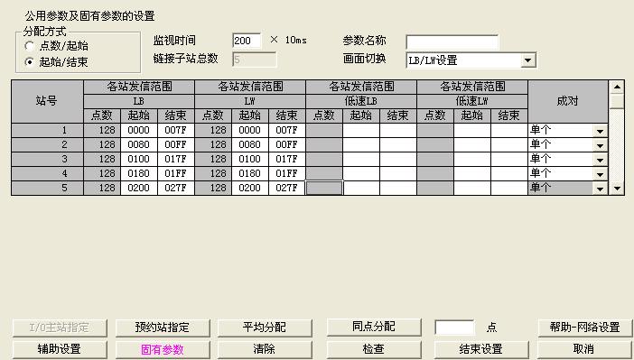 設(shè)定H網(wǎng)模塊的起始I/O號,即H網(wǎng)模塊在基板上的位置。每個H網(wǎng)模塊占有32個I/O口的位置,把模塊I/O口起始地址的高2位填于此就可以了。如模塊占有0A00~0A1F,則模塊起始I/O 號就是0A。