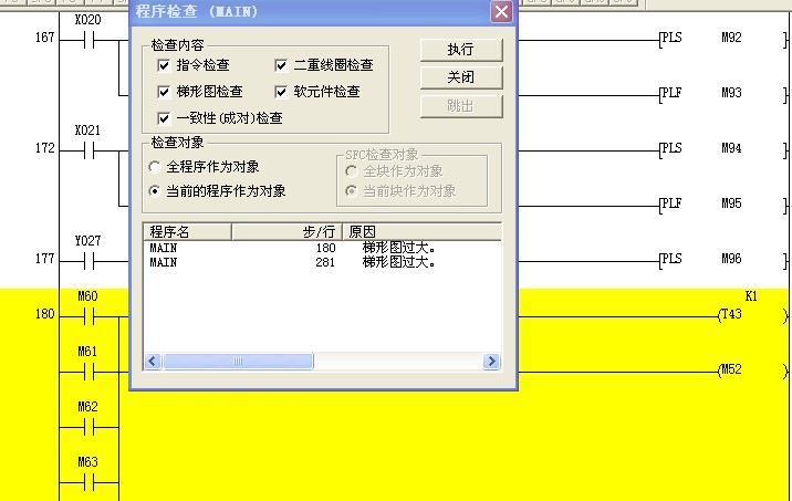 提示告訴你你的程序行數(shù)超限,對(duì)于GPPW來說,其一個(gè)輸出點(diǎn)最多并聯(lián)輸入點(diǎn)位24行,而FXGP軟件中無此限制。