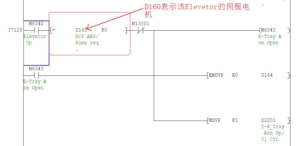 那個地方是一個比較指令,其中D160是表示一個升降軸的伺服電機(jī),但我不知道為什么伺服電機(jī)每次動作時都會有這個比較指令,哪位能幫我解
