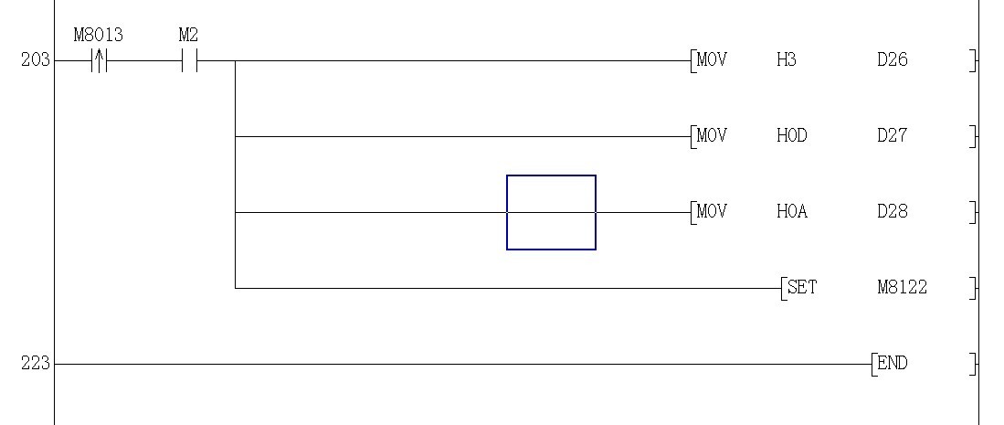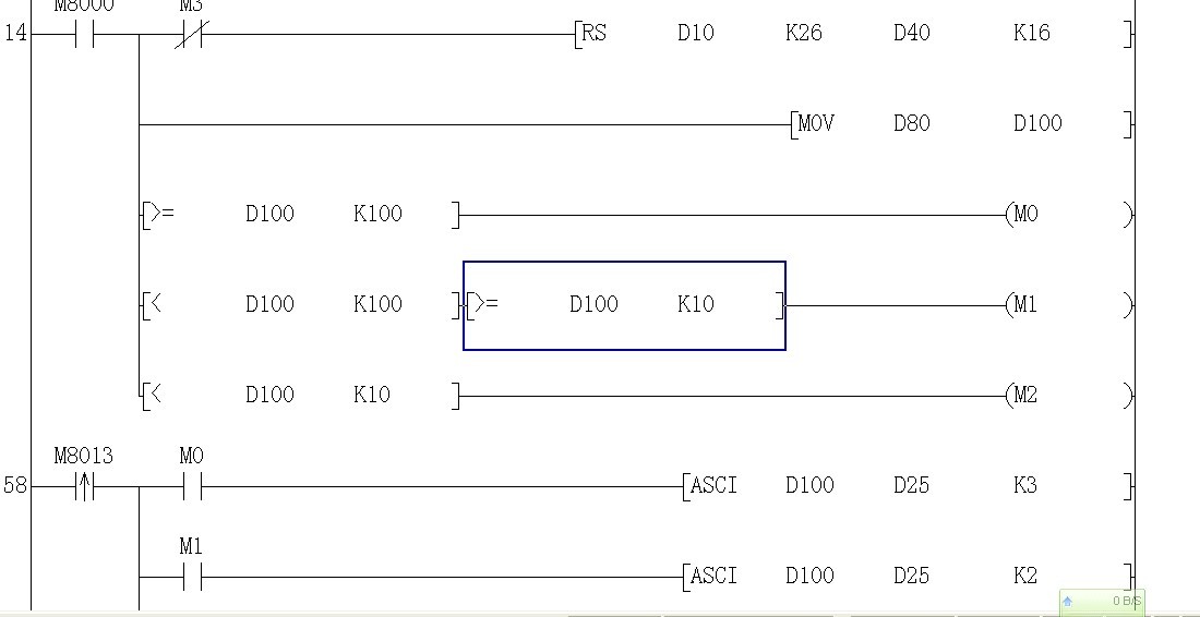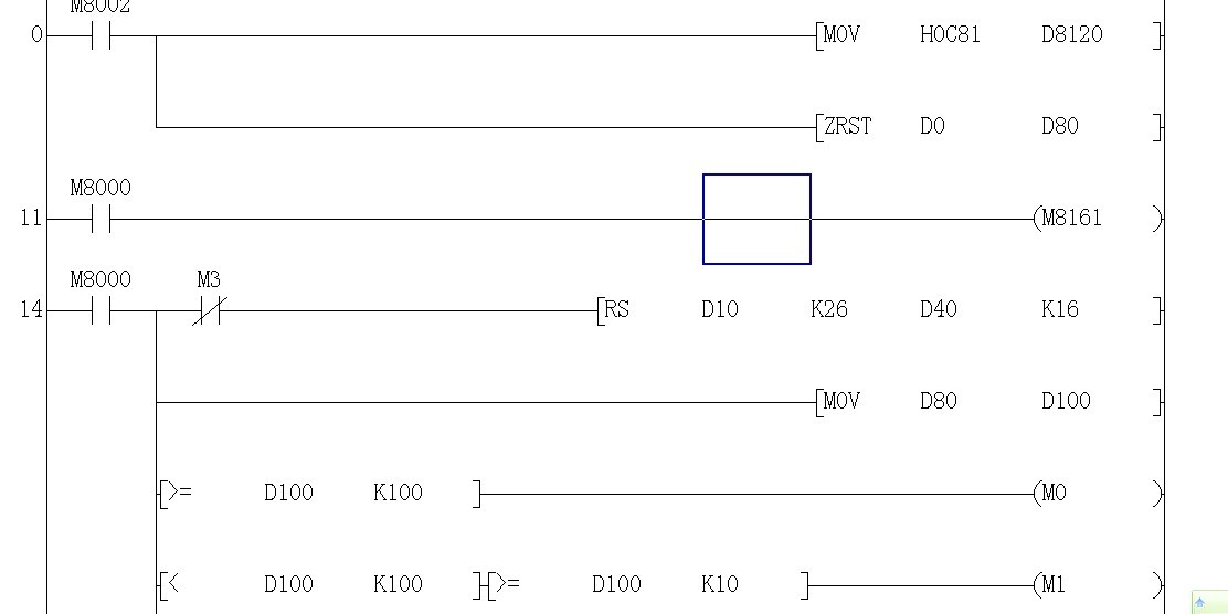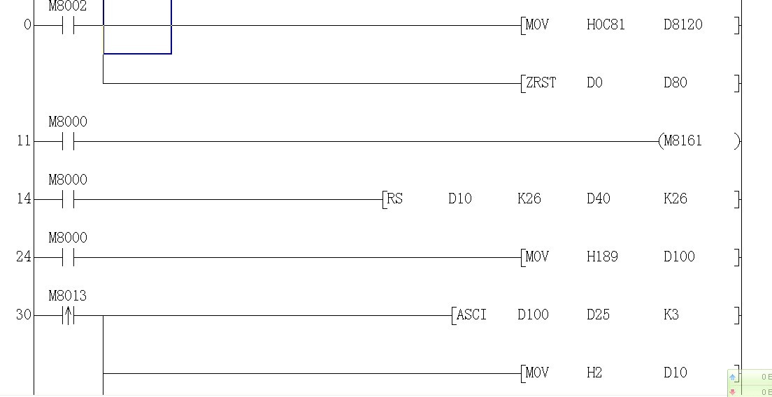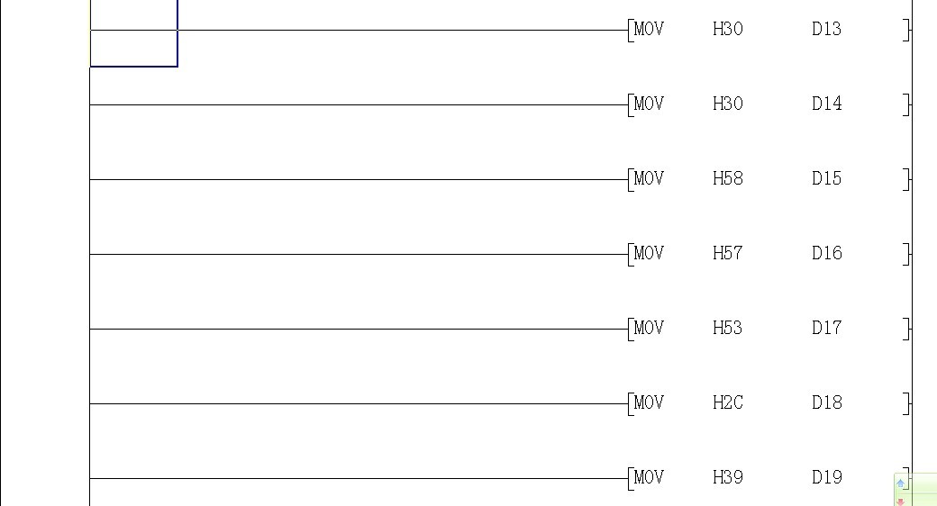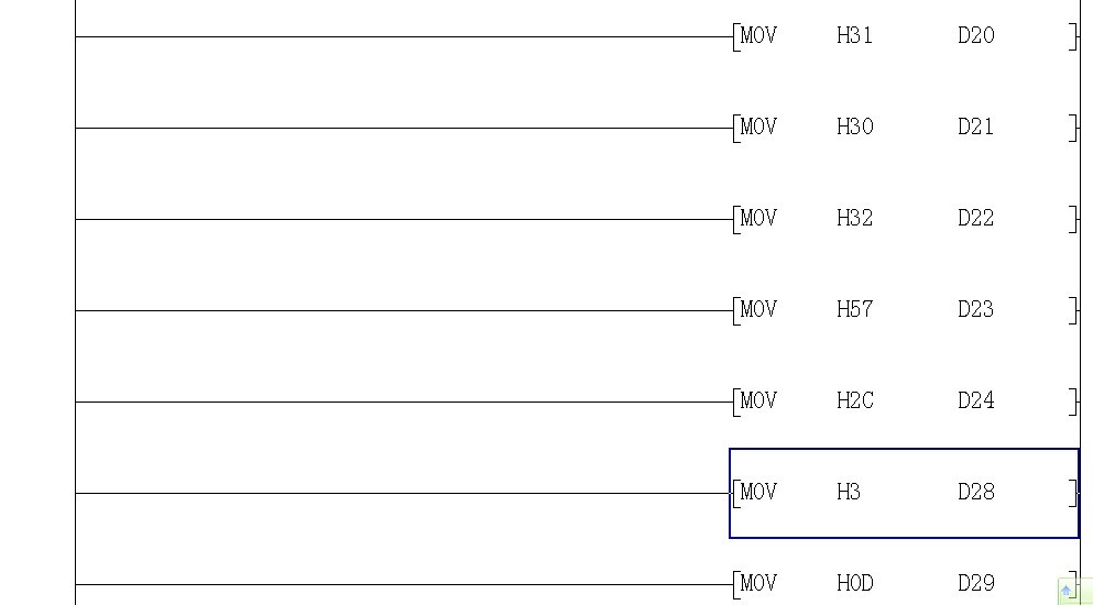 如圖 MOV H123 D100 是我輸入溫度 ASCI D100 D25 K3 轉(zhuǎn)化為 H31 H32 H33 分別放到 D25 D26 D27 可現(xiàn)在有個(gè)問題我這個(gè)只能輸入100以上的溫度。要輸入100以下的溫度就必須把 最后后面三個(gè) MOV H3 D28 , MOV H0D D29, MOV H0A D30 的寄存器變化。