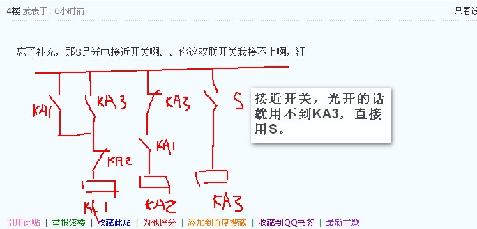 引用引用第4樓dlke2009于2009-08-11 14:53發(fā)表的 :忘了補(bǔ)充,那S是光電接近開關(guān)啊。。你這雙聯(lián)開關(guān)我接不上啊,汗