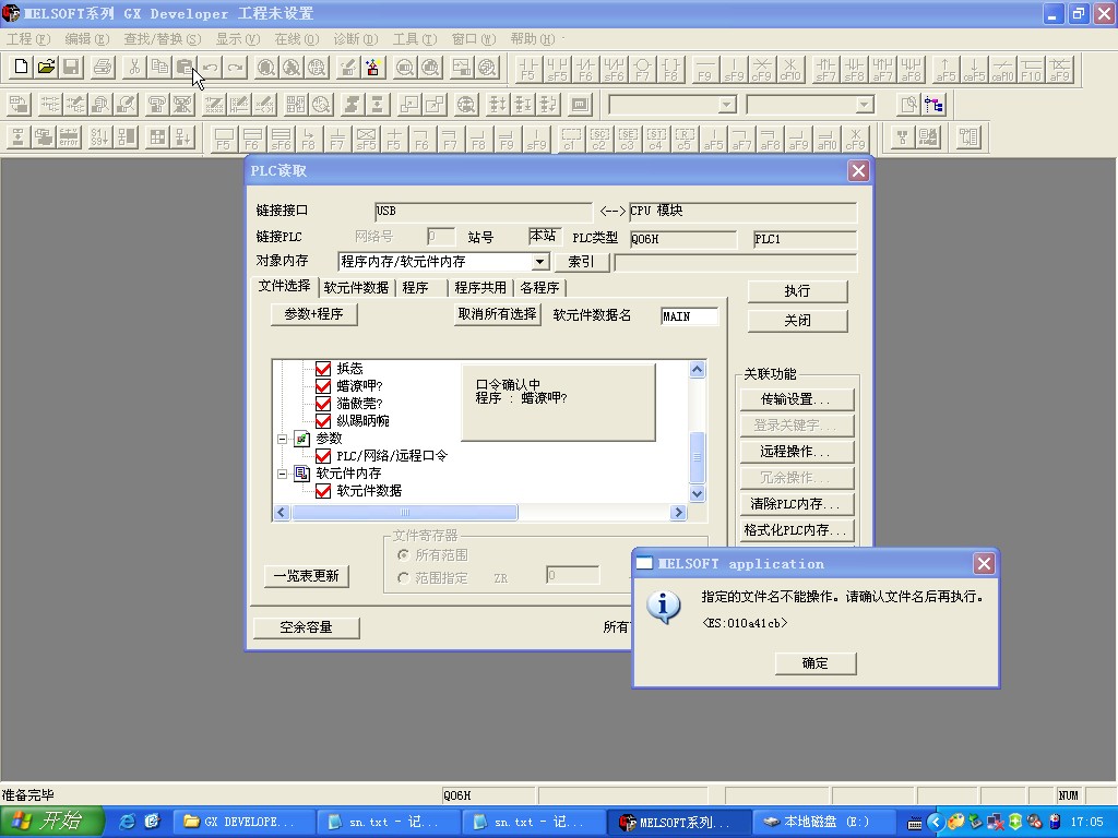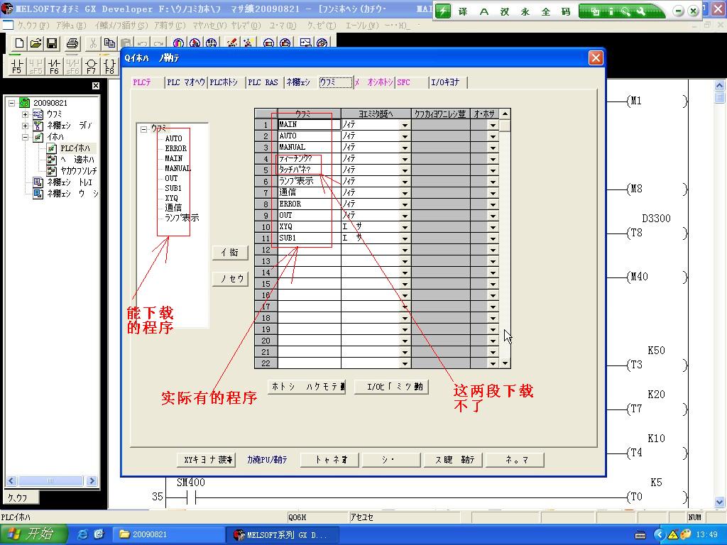 日本做的Q06hcpu程序不能完全下載,共有11段程序,但標題有問號就不能下載,問題是它又是如何上載成功的?求高手解惑!能下載有問號的程序?