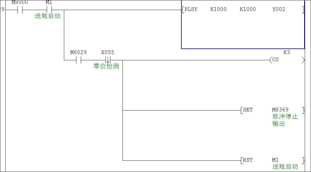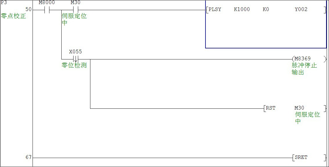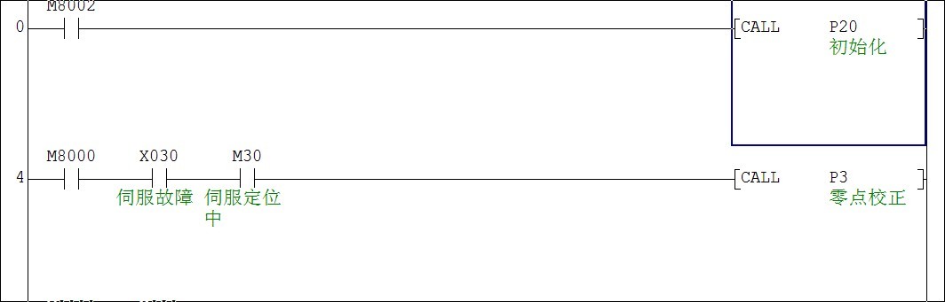 我剛剛接觸三菱PLC編的一個(gè)簡(jiǎn)單的程序 在初始化的時(shí)候M30和Y5都是置位的 但程序?qū)隖X3UPLC后上電后零點(diǎn)校正正常 當(dāng)零位檢測(cè)后伺服電機(jī)停轉(zhuǎn)脈沖停止 M30復(fù)位后啟動(dòng)主程序中的M1伺服電機(jī)就是不動(dòng) 請(qǐng)問(wèn)各位大哥大俠 誰(shuí)能幫我分析一下這個(gè)程序那里有問(wèn)題 小弟先謝過(guò)了