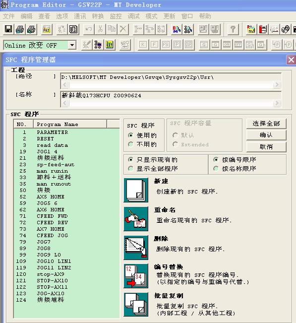 三菱運動控制器軟件MT Developer\Gsvqe\Sysgsv22p中文漢化版,因為工程量太大,還沒有全部完成,這是這個軟件中關(guān)鍵的一部分,現(xiàn)和大家共享。下載完成后解壓縮,直接復(fù)制替換MT Developer\Gsvqe\Sysgsv22p中的相同名稱的文件。[記得保留復(fù)制一下源文件,不滿意直接還原就可以了]  因為軟件支持語言的原因,漢化后是亂字符,有的地方只好保留英文,而有的地方是漢化與否,無關(guān)緊要。