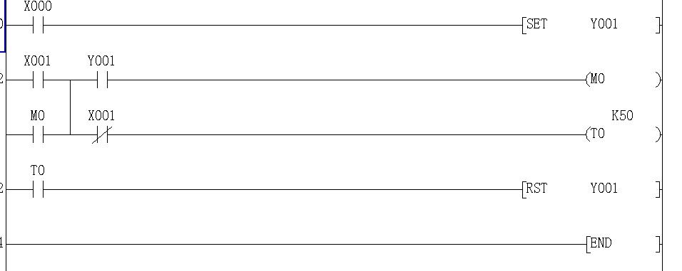按X0立即啟動(dòng)Y0,按X1后松開(kāi)5秒后Y0停止