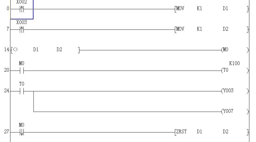 求助。。。如果一個(gè)物體在10秒內(nèi)沒(méi)有通過(guò)入門(mén)傳感器X2和X3之間的區(qū)域,則紅燈Y3常亮。而且喇叭Y7響。該怎么來(lái)做圖啊。請(qǐng)高手帶一下解釋。謝謝拉