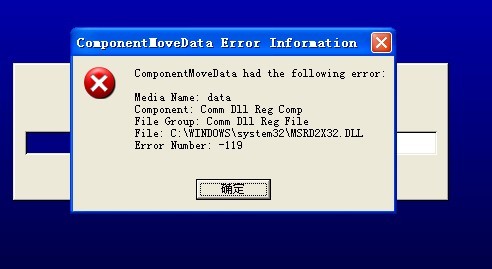 Media Name:dataComponet: Comm Dll Reg CompFile Group: Comm Dll Reg FileFile: C:\WINDOWS\system32\MSRD2X32.DLLError Number: -119