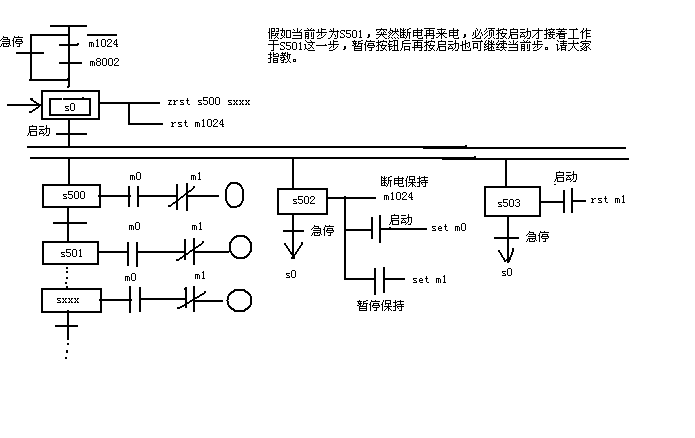 譬如斷電前工作于S500這一步,上電后必須按下恢復(fù)按鈕馬上使S500工作,不能送電就S500啟動,不知道如何解決.