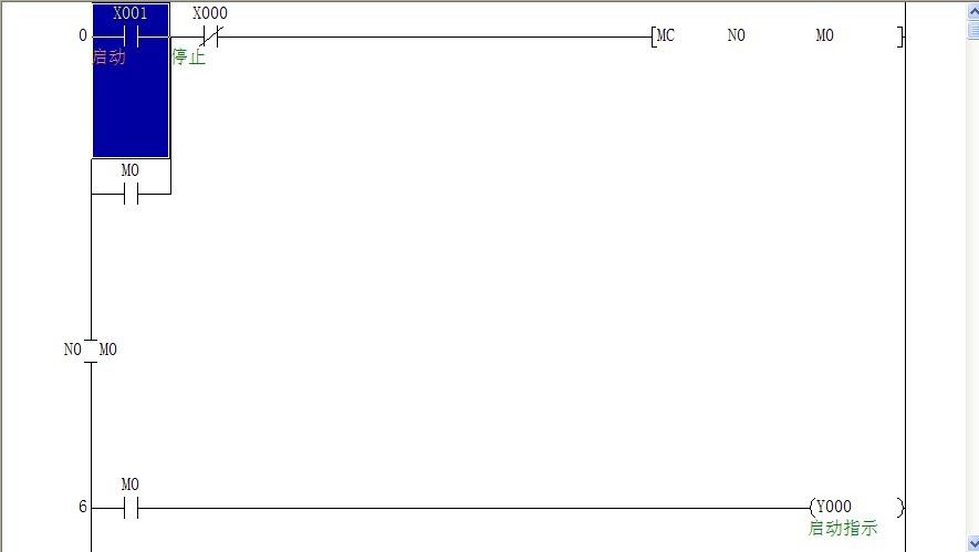 這個觸點不是寫入的,是程序自動生成的,比方說,你寫了一句輸出MC N0 M0,此時N0不在母線上顯示,此時你在寫入模式。當(dāng)你把軟件轉(zhuǎn)換為讀出模式時,N0就顯示在母線上了。MC 與MCR為主控指令,成對使用,圖中X1合上,X1斷開時執(zhí)行從MC到MCR之間的指令,否則這段指令不執(zhí)行,而直接跳至MCR指令以下的程序。