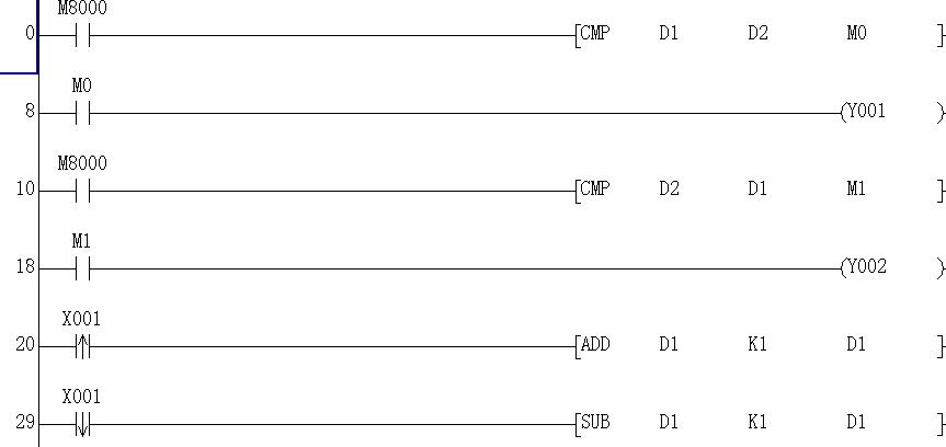 臺(tái)車呼車系統(tǒng)未上電時(shí),車停在某個(gè)加工點(diǎn)(也稱工位)。臺(tái)車呼車系統(tǒng)上電后,若無用車呼叫(也稱呼車)時(shí),則各工位的批示燈全亮,表示各工位均可以呼車。當(dāng)工作人員按下某工位的呼車按鈕進(jìn)行呼車時(shí),各工位的指示燈均滅,此時(shí)別的工位呼車無效,當(dāng)呼車工位號(hào)大于停車工位號(hào)時(shí),小車自動(dòng)向高位行駛,當(dāng)呼車工位號(hào)小于停車工位號(hào)時(shí),小車自動(dòng)向低位行駛,當(dāng)小車到達(dá)呼車工位時(shí)自動(dòng)停車。停車時(shí)間為30S,供用車工位使用,此時(shí),其它工位不能呼車。停車工位呼車時(shí),小車不動(dòng)。從安全角度出發(fā),停電后再來電時(shí),小車不能自行啟動(dòng)。
