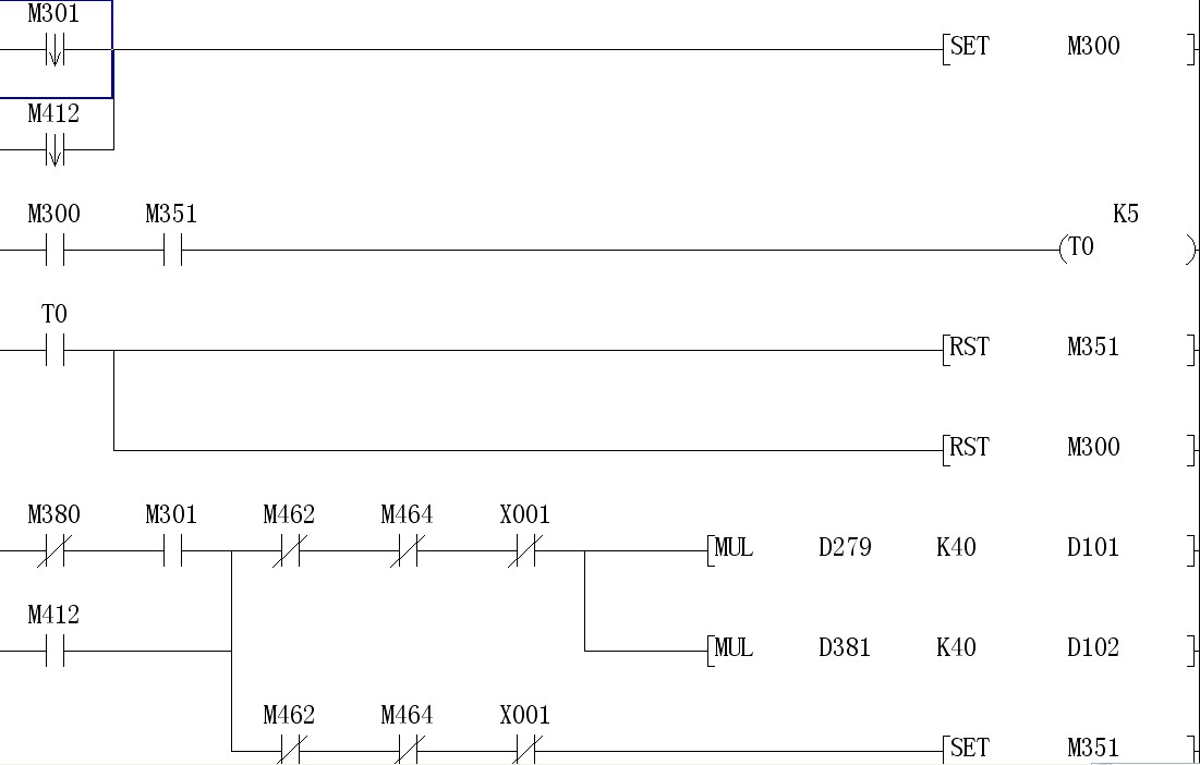 引用引用第6樓barwey于2010-07-08 18:11發(fā)表的 :謝謝各位好朋友們,4的程序我都看了,如果M462都接通的話,那么程序則不成立了。你們看看是不?5樓的朋友,你的想法很好,但是,我M301或412未接通的情況下,T5會不會運行呢?