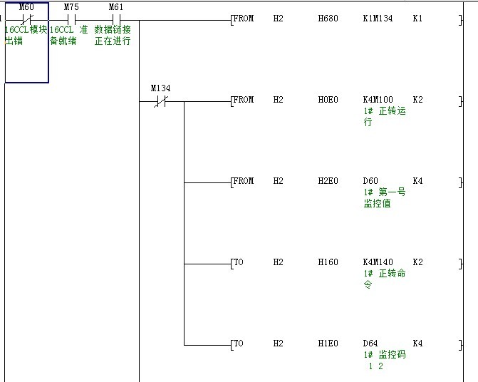 這個是變頻器的程序,這個正轉(zhuǎn)運(yùn)行,第一號監(jiān)控值,正轉(zhuǎn)命令,監(jiān)控碼的這幾條指令不理解。查找了相關(guān)的三菱變頻器手冊也沒找到相關(guān)的BFM解釋,有人知道該查找那部手冊么,請指教