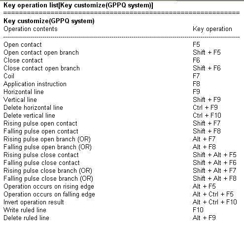 Key operation list[Key customize(GPPQ system)]