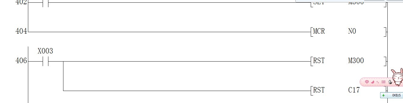 這是我從一個正常工作的機器上讀出的程序,我是初學plc的這個梯形圖我看不懂,就404到406步中左母線怎么沒連接上,像是斷了但我試圖連接但沒成功。在此向各位高手求教。