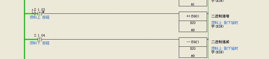 怎么D20的數值會出錯呢!用兩個按鈕來使D20的數值自加減,但打箭頭的地方老出錯,程序就不正常停機了,不知是不是要轉換bin值為bcd值!