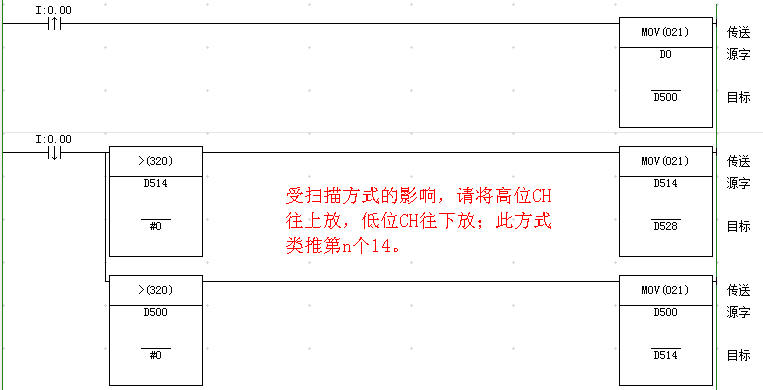 就是每次,按鍵A上升沿把一定的值MOV到D500中,按鍵A下降沿把D500的地址加14