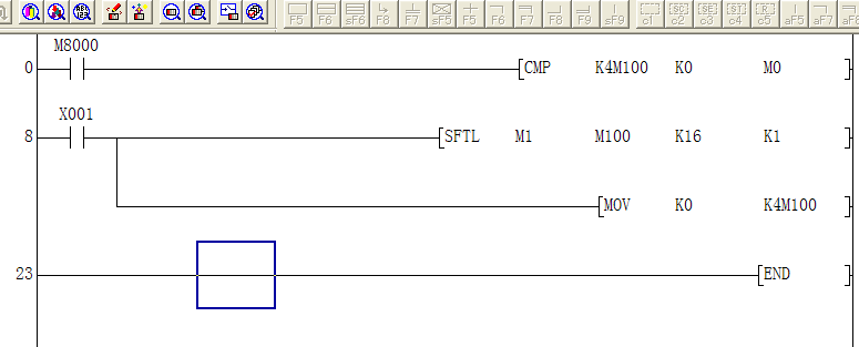 你上邊的程序本身就有毛病, MOV  K0  K4M100  這條執(zhí)行的時候,整個程序就沒有比較可言了。
