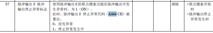 CP1H OMRON PLC編程時用A444代表脈沖輸出0發(fā)生異常,如果此時電機(jī)出現(xiàn)異常時A444出現(xiàn)了一個數(shù)字,此數(shù)字所對應(yīng)的電機(jī)異常具體是什么大家知道嗎?手冊里貌似米有哇!