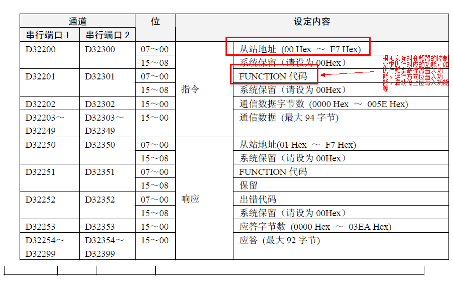 4.不同的PLC發(fā)送Modbus-RTU命令使用的IO存儲(chǔ)器地址不同,控制字也不一樣,需要具體對(duì)待。歐姆龍PLC分配情況如下所示:
