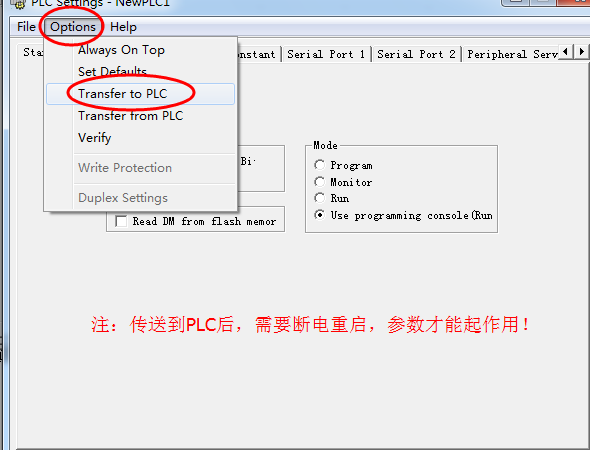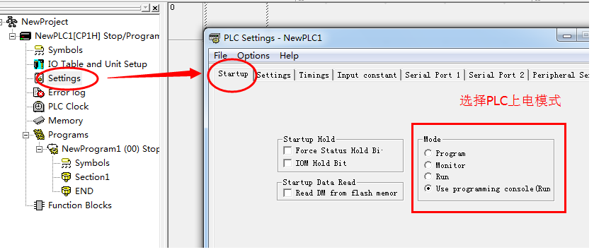 調(diào)試過程中碰到一個難題。! 就是CP1H PLC每次上電后沒有轉到運行或者監(jiān)控模式!只能用電腦先切換到運行或者監(jiān)控模式才能有效,不知道是不是PLC中設置了什么??
