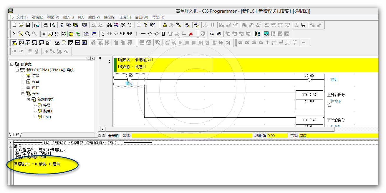 我第一次用plc,型號是cpm1a-20cdr-a-v1,編程的時候出錯提示:多重end在回路0(6,0),我在網(wǎng)上查了一下,