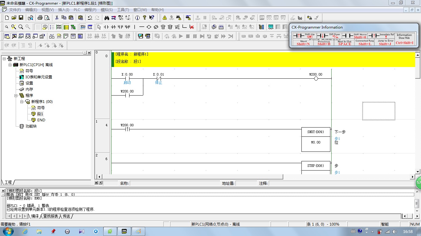 我在電腦上仿真沒有出現(xiàn)你說的定時(shí)器停不下來的情況,警告SNXT用作SET指令在條1(6,0)我也不知道是什么原因,反正只要寫步進(jìn)程序時(shí),就會(huì)有這個(gè)警告。