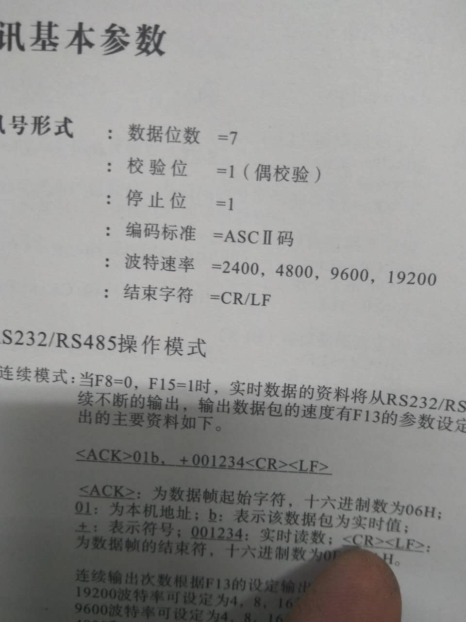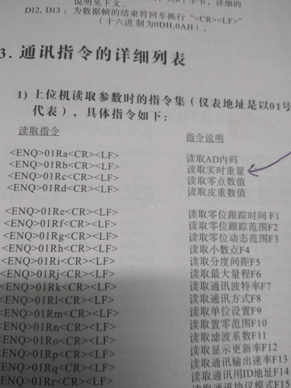 發(fā)送讀實(shí)時(shí)重量命令字符7個(gè)字節(jié):