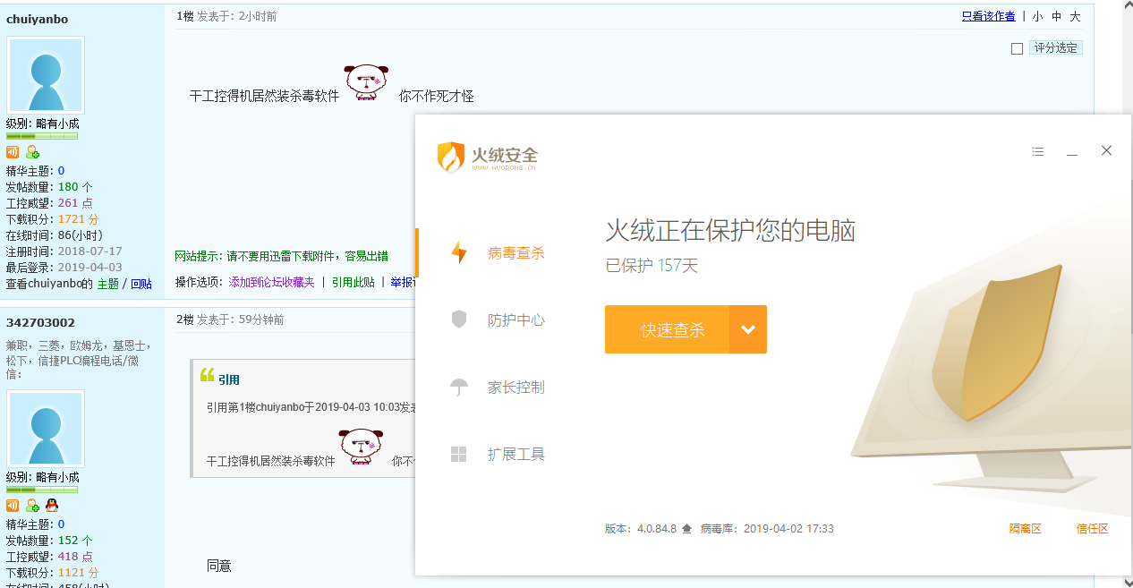 做工控就不能裝殺毒軟件,這邏輯頭一次聽說。