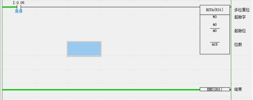 歐姆龍手冊上多位復(fù)位RSTA的用法,只針對輸入或輸出繼電器做了例子,要對內(nèi)部繼電器進行多位復(fù)位,和手冊上的例程有點不一樣,D起始字指定W0,N1起始位設(shè)定&0,N2位數(shù)設(shè)定&15,即從內(nèi)部繼電器W0的0.00開始往高位15個位數(shù)復(fù)位。