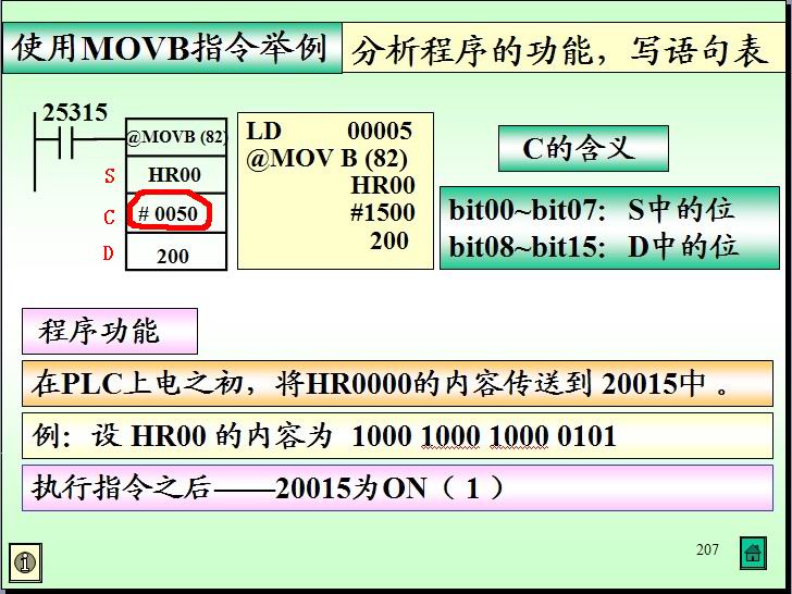 我想不明白#0050這個(gè)控制數(shù)是不是寫(xiě)錯(cuò)了,應(yīng)該是#1500這樣才是將源的HR0000位放到目標(biāo)20015位吧,