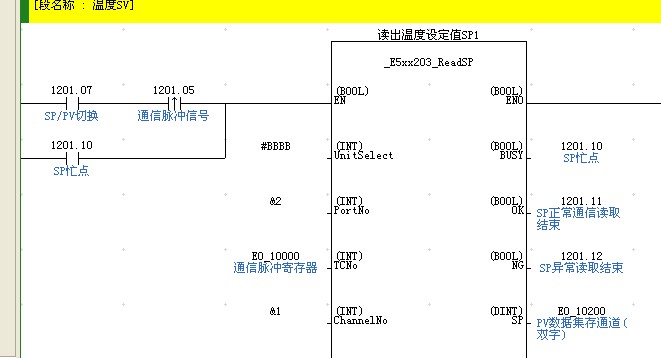 很簡單的,插入庫文件,找到溫度控制器,用E5CN的就行,然后選是讀啥參數(shù)還是寫啥參數(shù)。鼠標(biāo)放在梯形圖功能塊上點(diǎn)右鍵參考,可以釣出該塊的PDF說明,實(shí)在不懂還有個(gè)辦法,400 820 4535 那里的小妹妹很溫柔的,還要你留電話號(hào)碼呢。