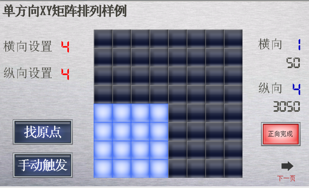 要是位置太多就做個自動按間距計算生成位置數(shù)據(jù)組A的子程序,每個位置可以單獨修改,避免機械原因某個間距不對或是坐標(biāo)系不平行