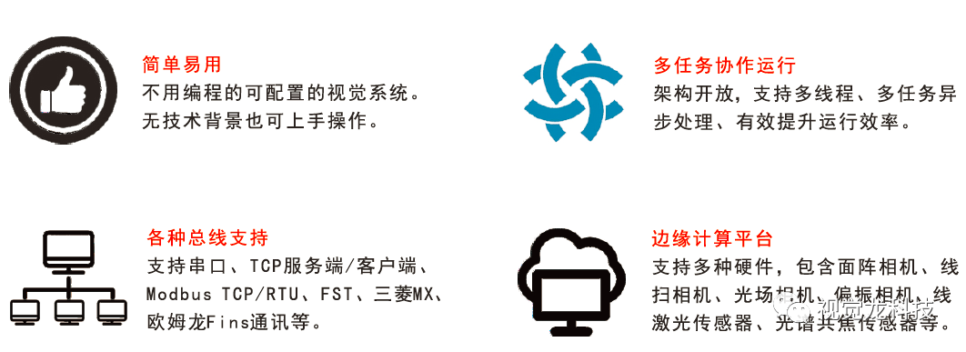 它包含幾千種算法,架構(gòu)開放、支持多線程多任務(wù)并行處理。龍睿擁有2D視覺、3D視覺、彩色視覺、AI深度學(xué)習(xí)視覺、視覺溯源、邊緣計(jì)算等技術(shù),可以連接各類相機(jī)和傳感器,實(shí)現(xiàn)智能制造、高端農(nóng)業(yè)、智能物流、智慧城市和智慧醫(yī)療等多領(lǐng)域應(yīng)用場(chǎng)景。