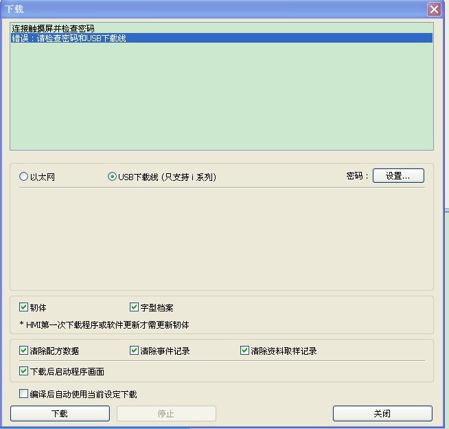 一般來說,USB 的線問題應該不是很大,問題一般出在驅動和密碼上。威綸的I系列的USB通訊,實際上是USB-232的通訊,但威倫把232芯片放到了觸摸屏內(nèi)。而且它的驅動,有時候還安裝失敗[感覺有點腦殘]雖然顯示成功。密碼默認是111111,如果沒有修改過。