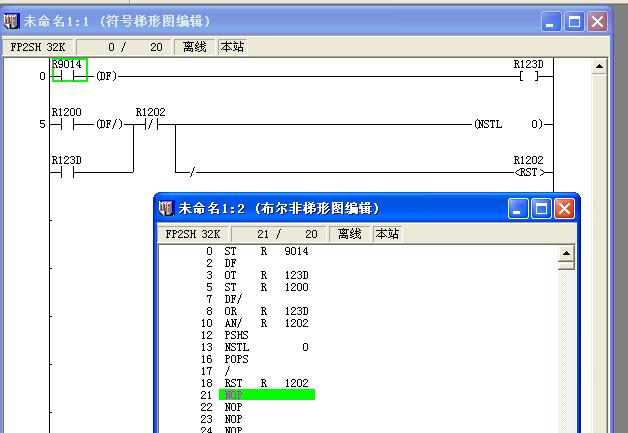 引用引用第13樓znz43于2012-05-09 13:57發(fā)表的 :這部分程序能執(zhí)行,但不能轉(zhuǎn)換成梯形圖。關(guān)鍵在下列處,(NSTL 0)后,語句(/)無法轉(zhuǎn)換成梯形圖,但程序可把當(dāng)前狀態(tài)轉(zhuǎn)成“非”,所以不出錯(cuò)。我在(NTSL 0)語句前和后,加上進(jìn)棧(PSHS)和出棧(POPS)后,就能轉(zhuǎn)換成梯形圖,而不影響原程序功能。