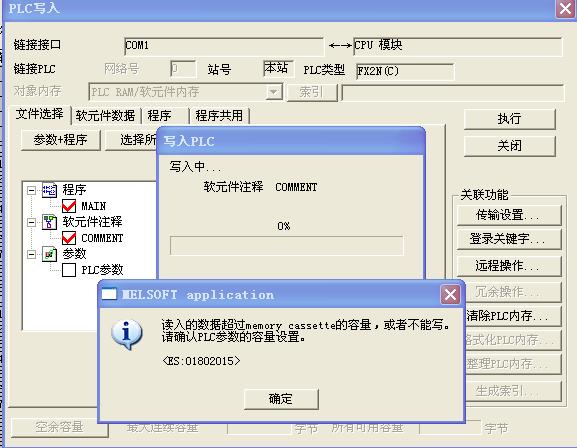 注釋已經說明是超容量了,同程序只要電腦的有注釋,讀出PLC程序時就會自動加入注釋.如果要寫入注釋