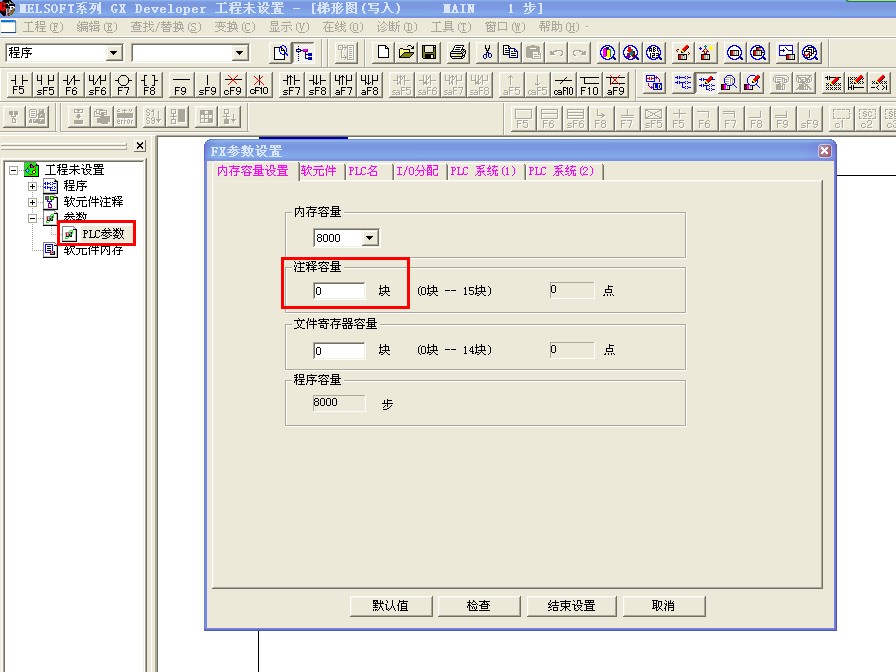 第二把手:可以通過修改PLC注釋容量來寫入PLC,PLC容量是有限的(也不能超出范圍).修改后還會影響軟元件PLC存儲空間大小.要注意.修改可看說明書都有講解.