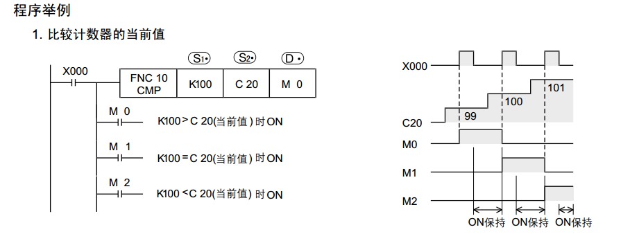 CMP K1>C0 m1=1, K1=C0 M2=1 ,K1<C0 M3=1 應(yīng)該就是這樣接通的。還有下個(gè)指令功能詳解吧
